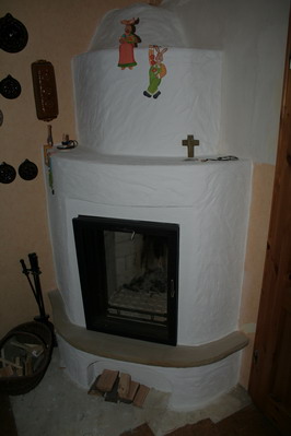 Der Kacheloffen wurde so integriert er heitzt das ganze Haus |