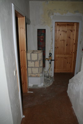 | Urzustand der Treppe | Der Kacheloffen im Flur |